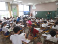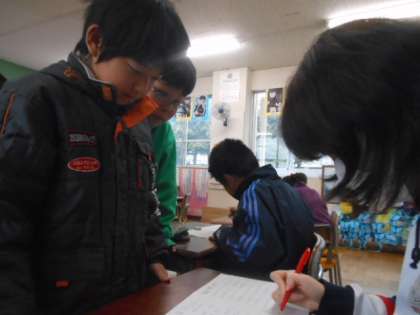 分数のひき算や図形の問題を復習しました。子どもたち対先生で、計算勝負をしました。