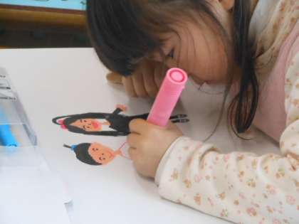 友達と過ごしたことやペアの6年生と手をつないでいるところなど一番心に残っている場面を絵にしました。