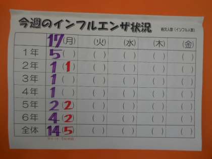 ★3月17日(月)のインフルエンザ・風邪等の欠席状況★