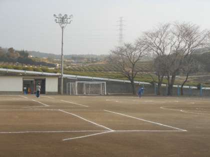 雨が降ってこなければ、とても良いグラウンドコンディションです。先生方が、サッカーコートなどのラインを引いていました。