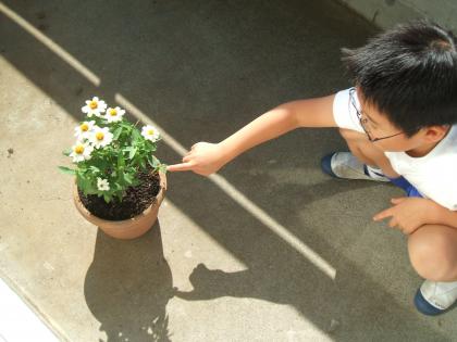 3年1組のベランダで育てている花の鉢から、なんとオクラの芽が出てきました。みんなで温かく見守りながら育てていきたいと思います。