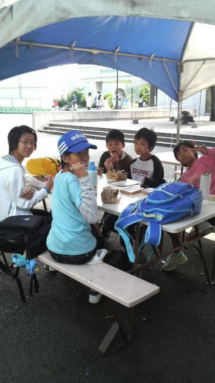 上野公園の中でお弁当を食べています。外で食べるお弁当は美味しいですね。