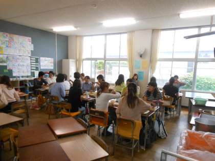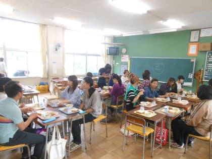 1年生の配膳や給食の様子を参観したあと、保護者の方が試食をしました。