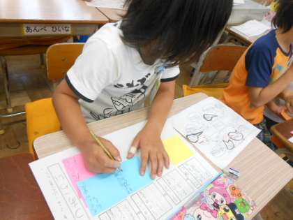 イメージマップを見て、順序を表す言葉や五感を働かせて感じたことを付せんに書いて、自分の思いを整理していきました。