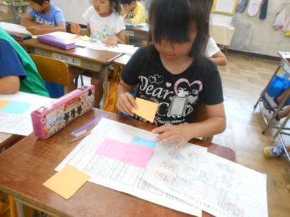 イメージマップを見て、順序を表す言葉や五感を働かせて感じたことを付せんに書いて、自分の思いを整理していきました。