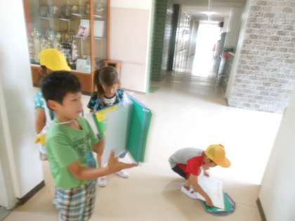 グループの ともだちと いっしょに、いどうしたり、しらべたり、せんせいから はなしを きいたりしました。