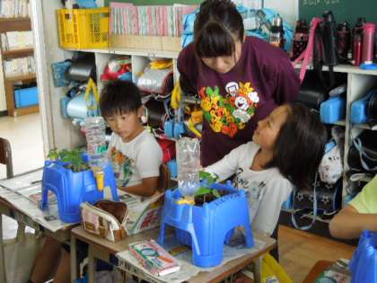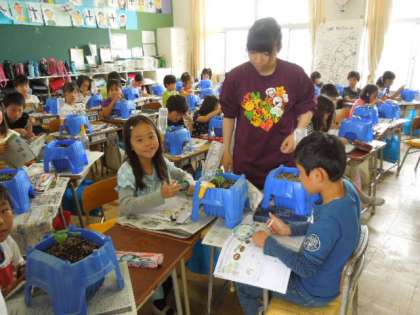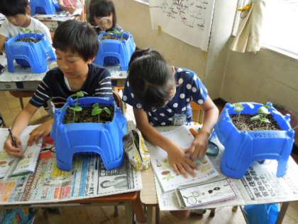 「3枚目の葉は、子葉と形がちがうよー」と様々な気づきをしていました。