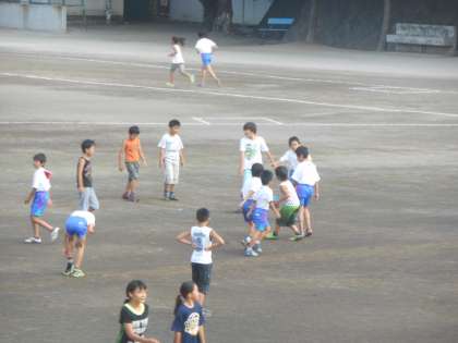 バレー型のゲームをしている子どもたちは、だいぶ上手になり、ラリーが続くようになのました。