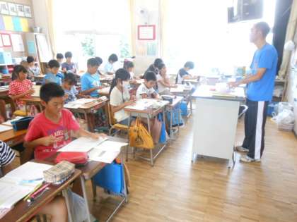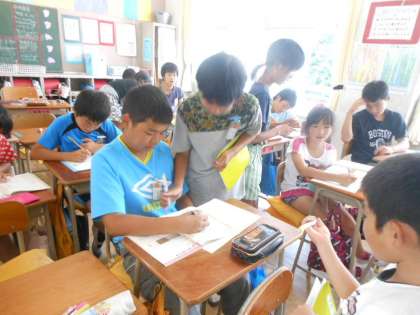 倍と割合の授業です。どれが「くらべられる量」「もとにする量」「倍」なのか、問題文を読み取り、教えあいながら学習しています。