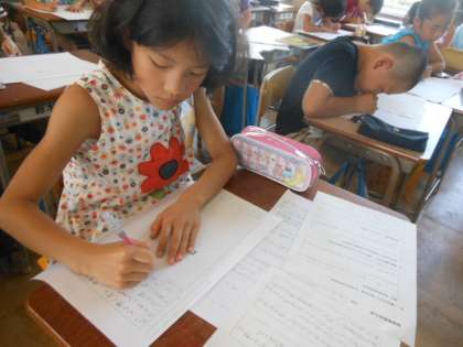 読書感想文のメモをもとに、原稿用紙に書き始めました。原稿用紙の書き方も確認しました。