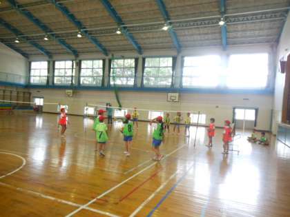 ボールをつなぐためにパスの練習をしてからゲームをしました。