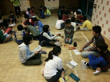 昨夜の係会で話し合われた事を、班員に伝達しています。