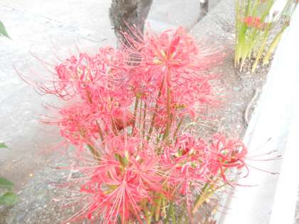 この時期に合わせて、彼岸花が咲きます。(写真は、校地東側の道路脇です)