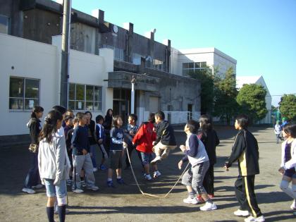 体力アップコンテストに取り組んでいます。記録を登録すると、静岡県内の学校と競い合うことができます。画像は8の字ジャンプですが、他にもボール運動やリレーといった種目もあります。