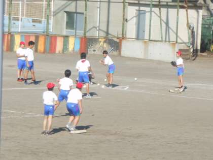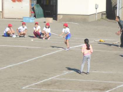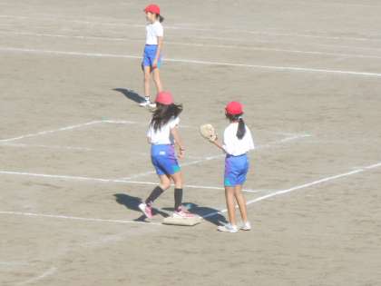 6年生は体育でソフトボール型ゲームを行っています。各チームとも白熱した戦いが繰り広げられています。