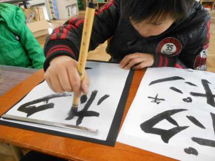図鑑の中から『タンポポ』を見つけ、お手本を見ながら書きました。