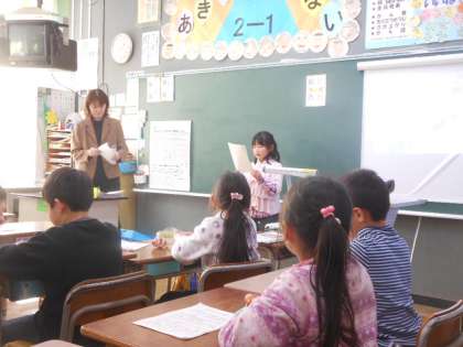 たくさんの方が参観してくれたので、緊張していたけれどみんな大きな声で発表していました。スキルの発表では、リズムに乗って楽しく音読することができました。