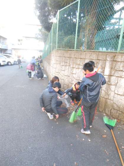 児童玄関前のあいさつ運動、落ち葉掃き…。