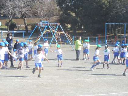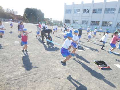 縄跳びの練習をしたり、2クラス合同でゲームをしたりして楽しみました。