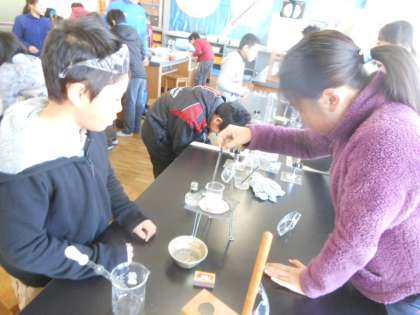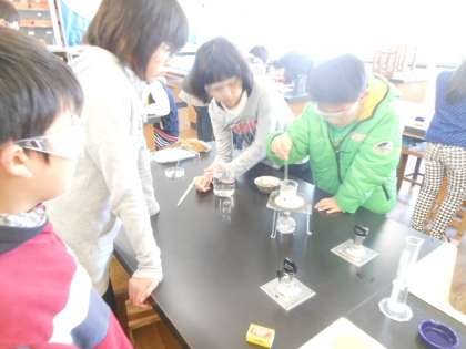前の時間はとけ残ったものをとかすにはどうしたらいいかを実験で確かめました。今日は、水溶液からとけているものを取り出すにはどうしたらいいのか?と課題としてみんなで方法を考え、実験で確かめました。