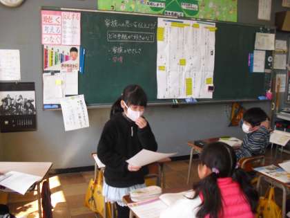 金曜日の10才記念式の前に、家族へのメッセージを書きました。「日本一短い家族への手紙」を読み、家族への愛情を感じ、自分の家族へ向けて、愛情いっぱいのメッセージを書きました。その思いを10才記念式では、伝えたいね。