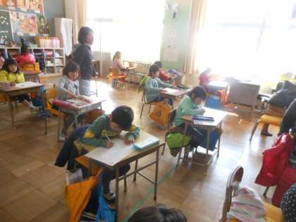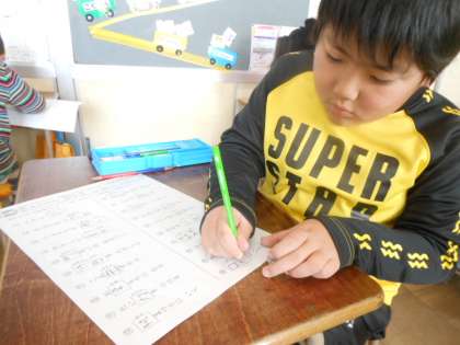 「ようふくの きかた」と漢字の基礎学(漢字)のテストをしました。