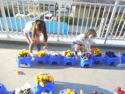 秋に植えたパンジーが寒さに負けずたくさんの花を咲かせていました。