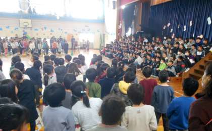 さらに、在校生の全員合唱のプレゼント。感動して涙ぐむ6年生の表情が印象的でした。