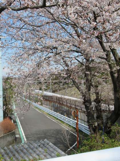 新幹線をまたぐ橋近くの大久望町の桜が、満開近くまで開花していました。