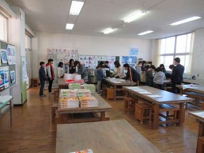 たくさんの配布物を袋に詰めて、教室に運びました。