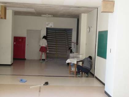 入学式準備 廊下や階段、児童玄関の掃除