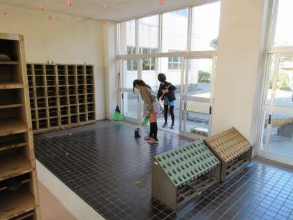 廊下や階段、児童玄関も、念入りに掃除しました。