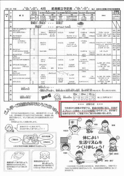 【給食の持ち物の変更】