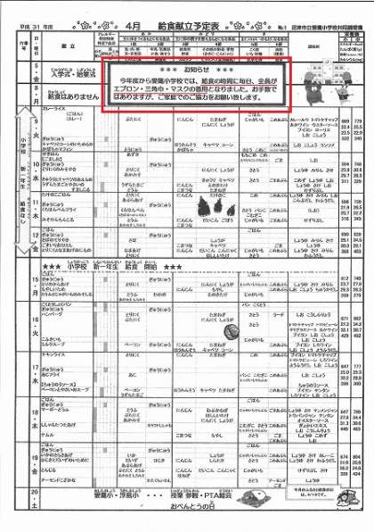 【給食の持ち物の変更】