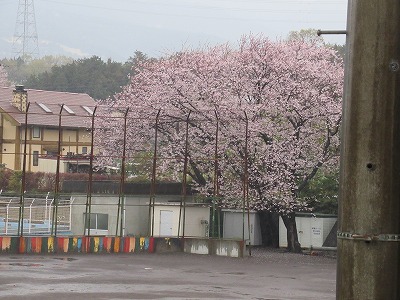 週末の暖かさで、運動場北側の桜も満開になったようです。