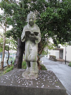 正門左側の二宮金次郎像付近は、桜の花びらが舞い落ちていました。