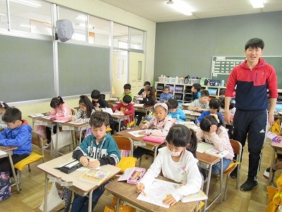 係を決めたり、自己紹介のカードを書いたり、自己紹介したりしていました。