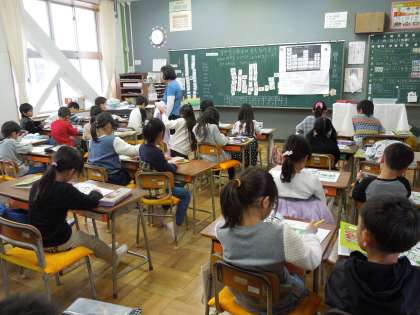 算数の勉強です。たくさんの果物の数を、それぞれ調べる学習です。どうやったら、正確で分かりやすいか考えていました。