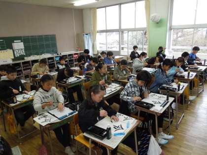 書写の時間に毛筆で新元号の「令和」の練習をしました。時代の移り変わりを感じます。