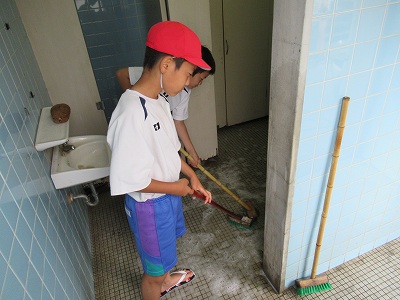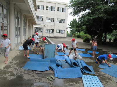 更衣室やトイレ、プールサイドに敷くマットもきれいにしました。