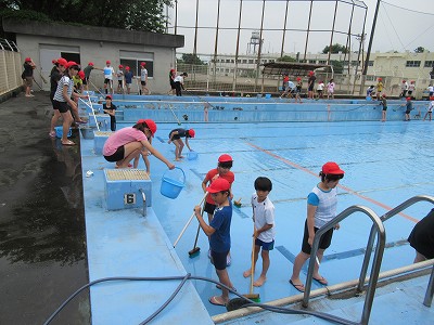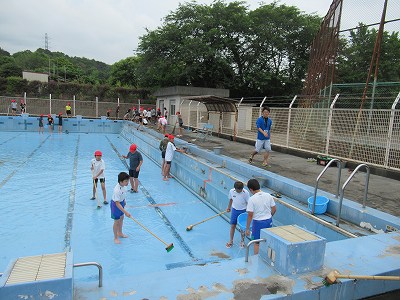 6月7日(金)、6年生がプール清掃に取り組みました。