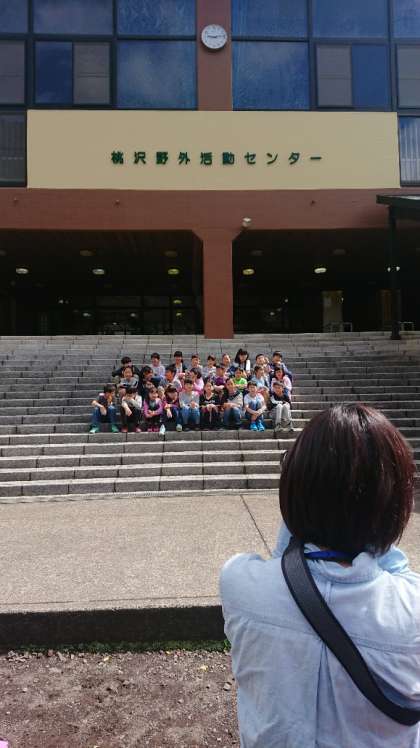 桃沢野外活動センターに到着しました。入所式まで時間があるので、先にクラス写真を撮っています。