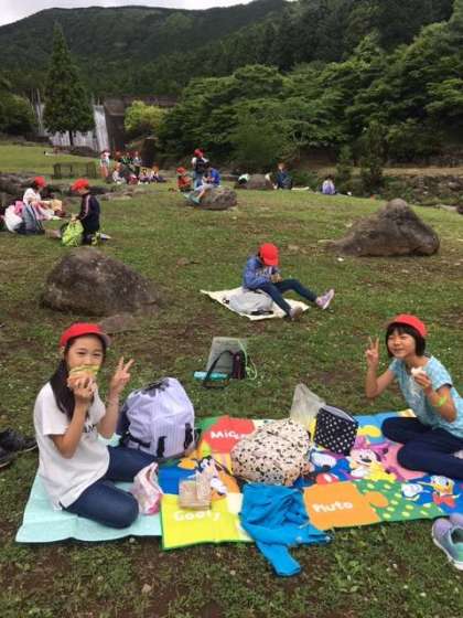 森と緑の社公園でお昼ごはんを食べています。