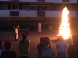 点火の儀式のあとは、レク係を中心にお楽しみタイムで盛り上がっています。
