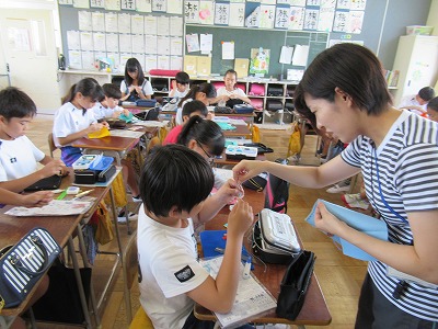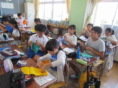練習を終え、ブックカバーづくりに取り組み始めました。