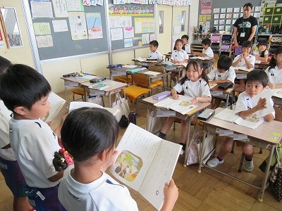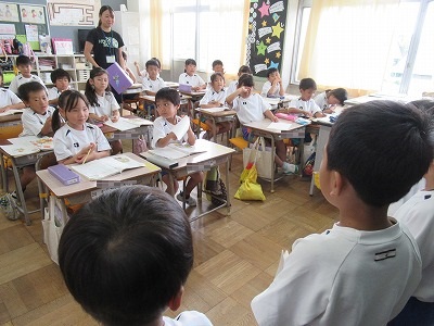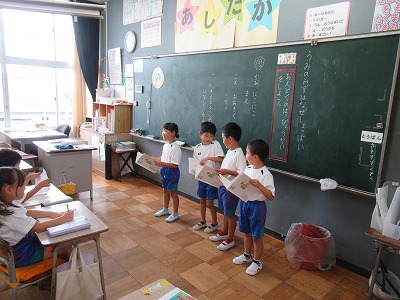 グループで練習した朗読を発表しました。
