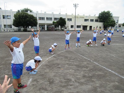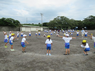 体育館から運動場に場所をかえて、表現の練習をしました。