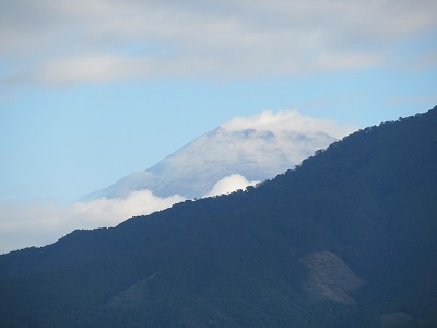 富士山に被さるように雲がかかっています。