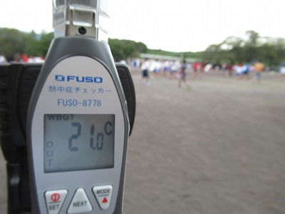 熱中症チェッカーの数値は21度、「注意して運動」レベルなので、