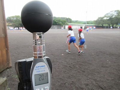 朝は涼しく、熱中症チェッカーの数値は20度台でした。